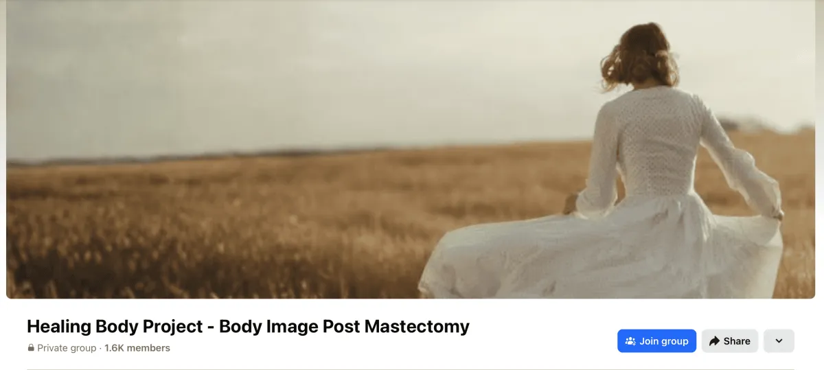 If you're looking for community and support, we have a private Facebook group led by Natasha focussing on body image after mastectomy. The aim of the group is to create an inclusive and supportive community of women who have undergone mastectomy. This group is a safe space where you can ask questions, be cheered on and receive support during tough moments.